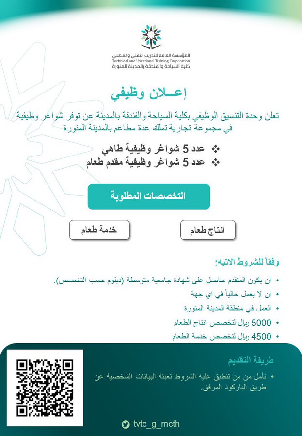 10 وظائف (كلية السياحة والفندقة بالمدينة)