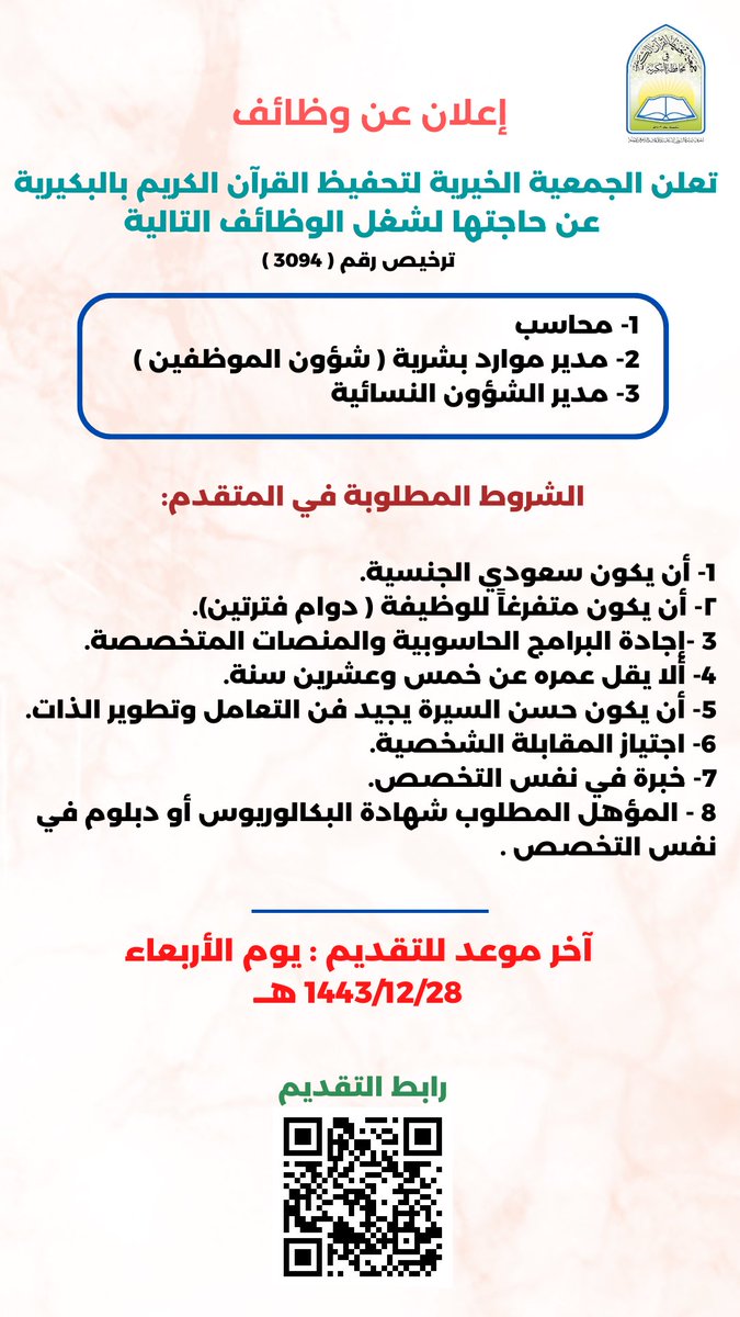 محاسب - مدير موارد بشرية - مدير الشؤون النسائية