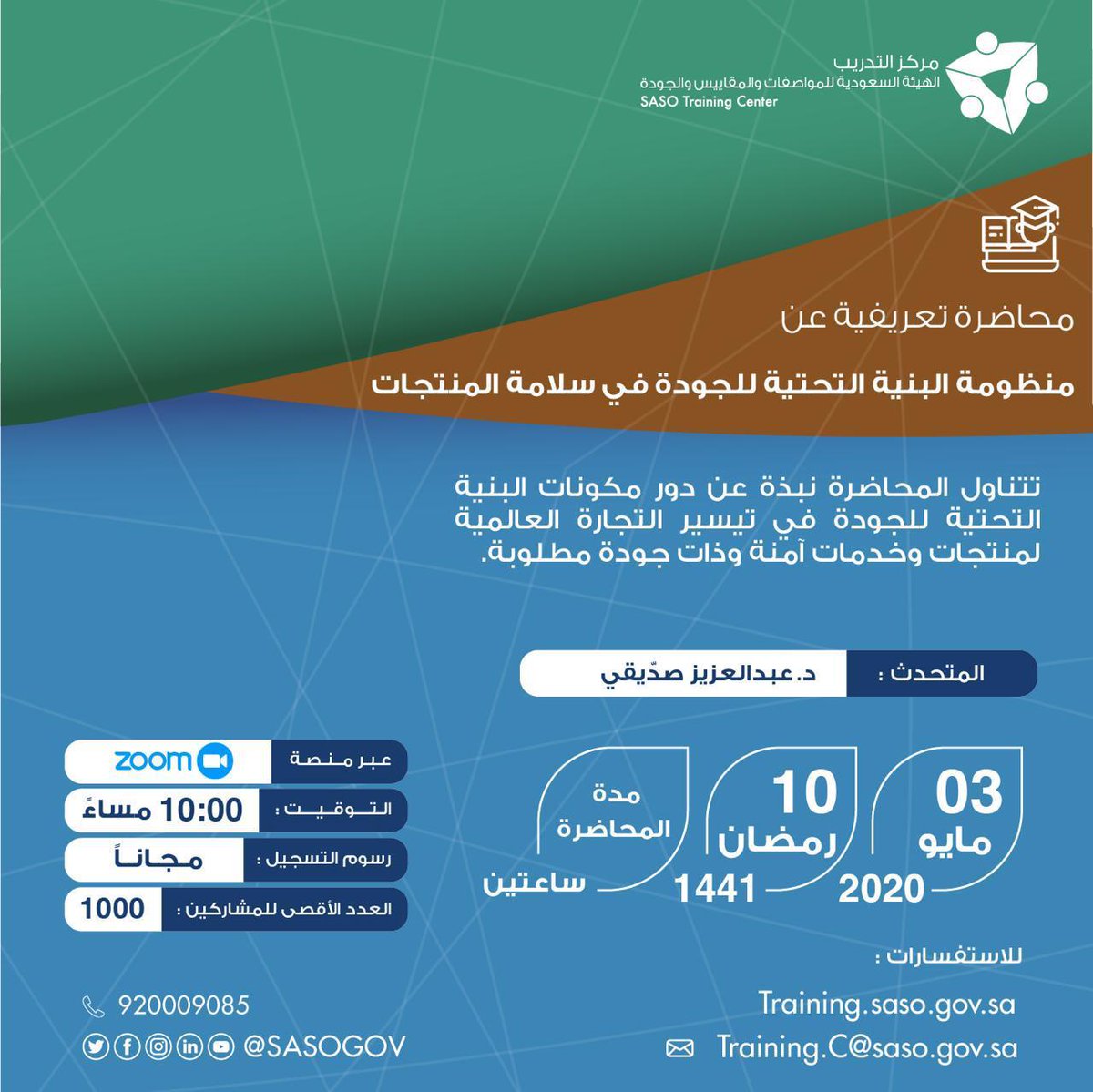 - تتناول المحاضرة نبذة عن دور مكونات البنية التحتية للجودة في تيسير التجارة العالمية لمنتجات وخدمات آمنة وذات جودة مطلوبة.