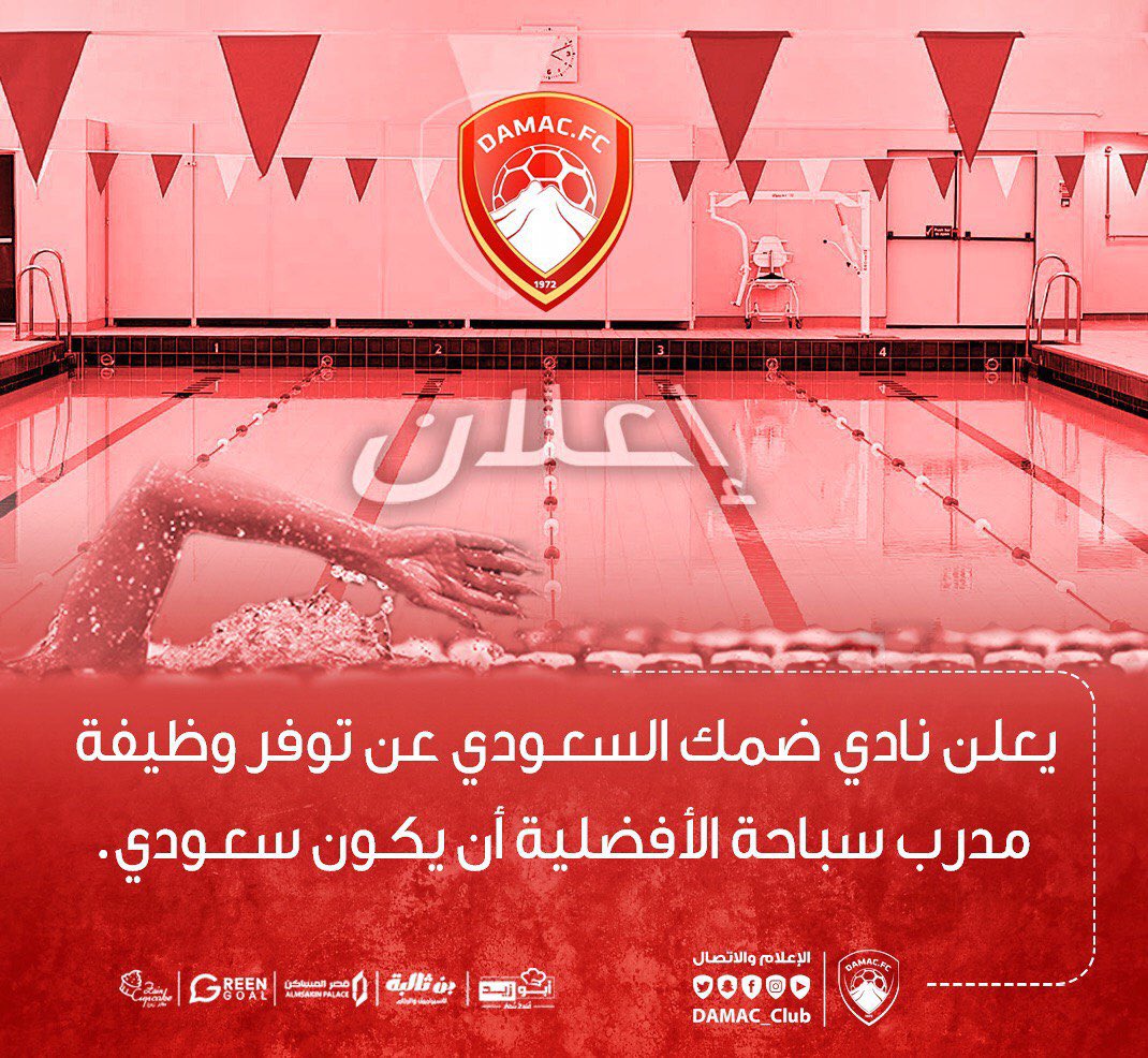 أعلن نادي ضمك السعودي بمحافظة خميس مشيط توفر وظيفة شاغرة للعمل بمسمى (مدرب سباحة)، وأكد النادي أن الأولوية في التوظيف للسعوديين، وذلك وفقاً للتفاصيل وطريقة التقديم الموضحة أدناه.