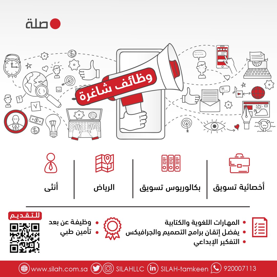 أعلنت شركة صلة توفر وظيفة نسائية شاغرة للعمل (عن بُعد) في مجال التسويق، بمسمى (أخصائية تسويق)، وذلك وفقاً لبقية التفاصيل الموضحة أدناه.