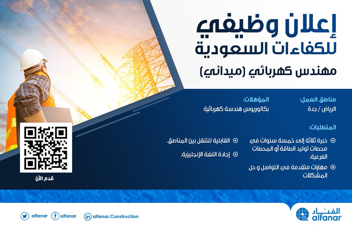 شركة الفنار | 1- الرياض 2- جدة | مهندس كهربائي (ميداني) | |