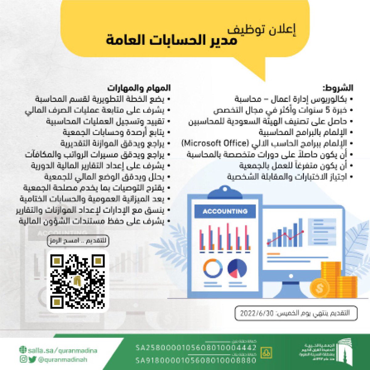 أعلنت الجمعية الخيرية لتحفيظ القرآن بالمدينة المنورة توفر وظائف إدارية لحملة البكالوريوس، وذلك وفقاً للتفاصيل وطريقة التقديم الموضحة أدناه.