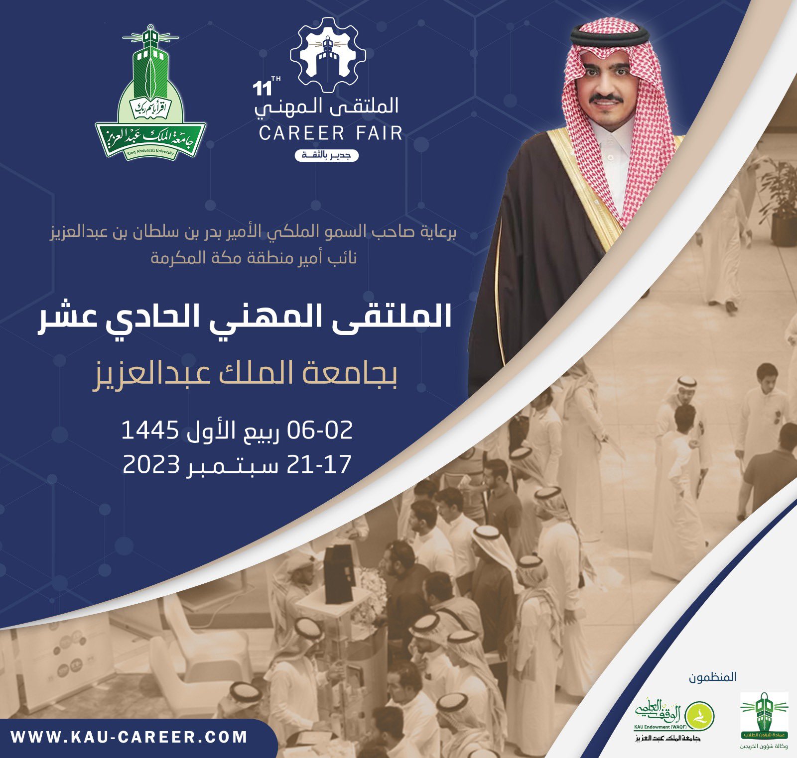 أعلنت جامعة الملك عبدالعزيز برعاية صاحب السمو الملكي الأمير بدر بن سلطان بن عبدالعزيز نائب أمير منطقة مكة المكرمة موعد إقامة (الملتقى المهني الحادي عشر)، والذي يجمع مختلف التخصصات الأكاديمية بمشاركة مؤسسات القطاع الحكومي والخاص وغير الربحي، مستهدفًا دعم التوظيف والتأهيل المهني والمهاري للخريجين والخريجات، وذلك وفقاً للتفاصيل الموضحة أدناه.